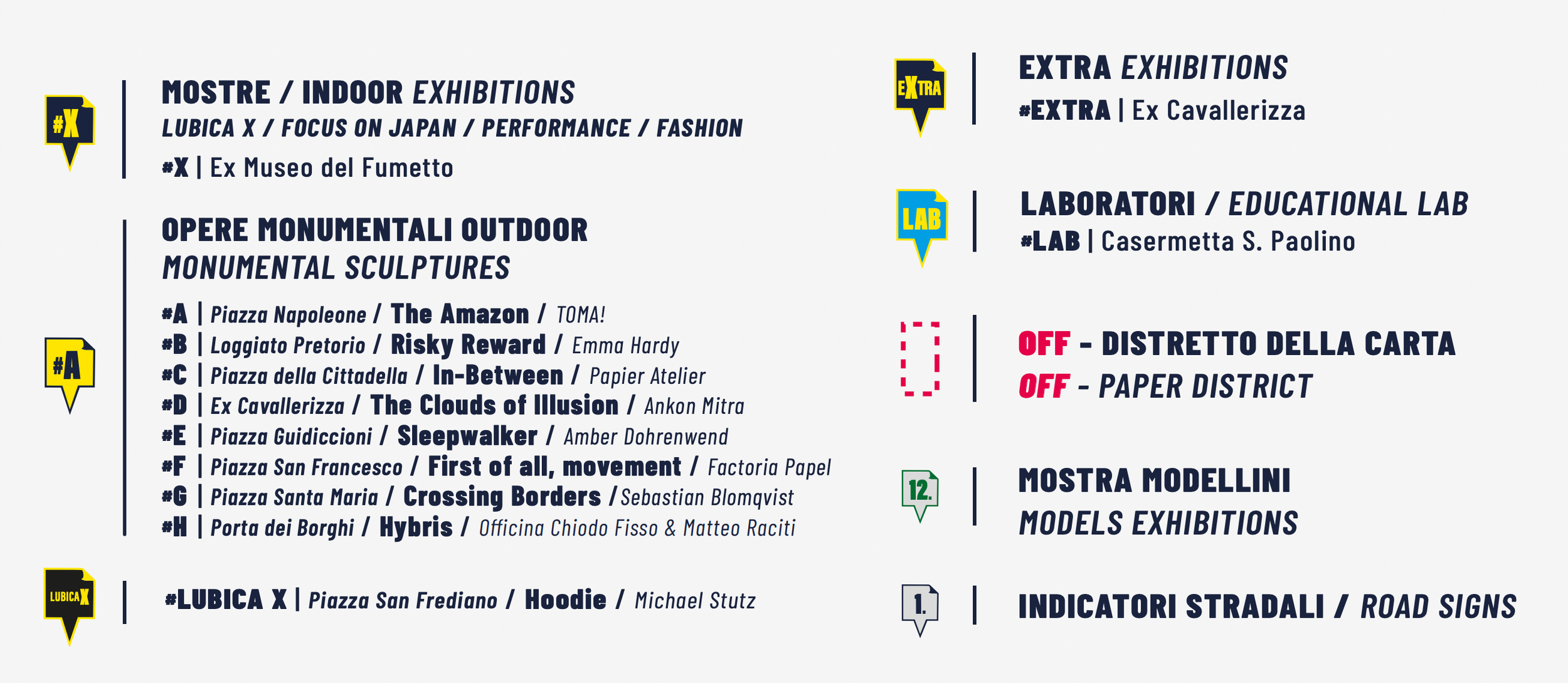 I valori che da anni si impegna a promuovere sono l’innovazione, la sostenibilità e la tradizione, stimolando la discussione su argomenti di interesse intellettuale e culturale. Le opere, selezionate da una giuria e rigorosamente realizzate in carta e cartone, compongono le sezioni dell’evento.